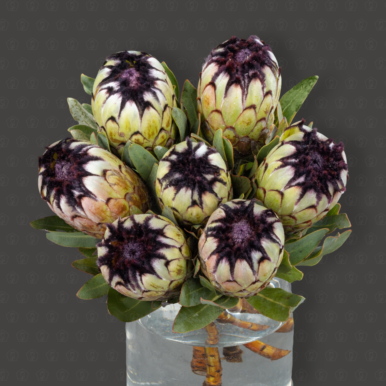 Протея — это уникальное растение, обладающее ярким соцветием, напоминающим чашу. Лепестки, собранные вокруг центра, имеют заостренную форму и могут варьироваться по размеру и текстуре в зависимости от сорта.