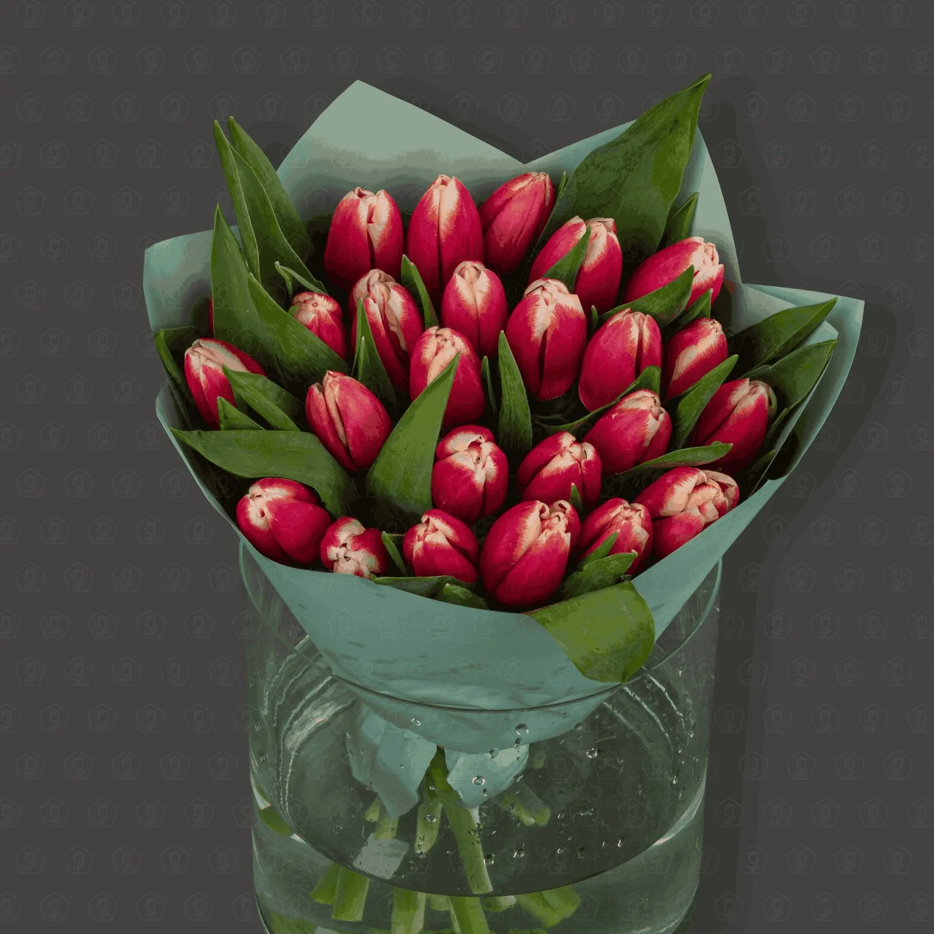 В лабиринтах запретных желаний, где тени страсти сплетаются с лунным сиянием невинности, расцветает букет "Искушение" — гипнотическая симфония из 25 красно-белых тюльпанов. Это не цветы — это вихрь эмоций, где контраст красного пламени и ледяной кромки рождает электризующее напряжение, заставляющее сердце трепетать в предвкушении. Стройные стебли, изогнутые в грациозном порыве, переплетаются в изысканную паутину, где 25 тюльпанов танцуют вальс искушения. Красный — символ неукротимого огня любви, белый — вуаль загадочной целомудренности, вместе они создают алхимию, опьяняющую душу. Идеален для свиданий, годовщин или моментов, требующих смелого признания.