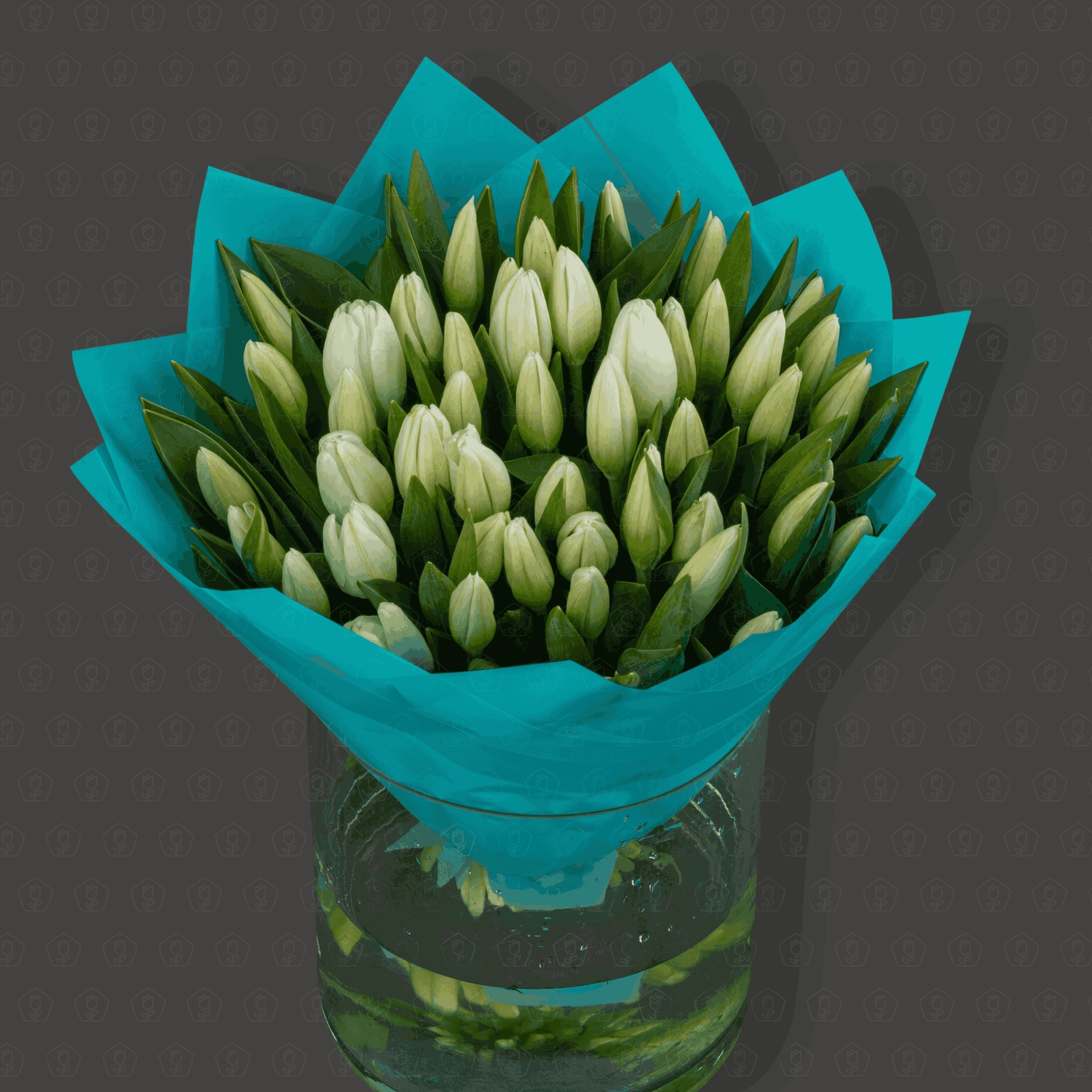Букет "Лазурь" — роскошное собрание из 51 белого тюльпана, воплощение чистоты, нежности и весеннего обновления. Каждый цветок в этом изысканном ансамбле — произведение искусства природы, отобранное, чтобы создать по-настоящему впечатляющую композицию. Этот букет — не просто цветочный подарок, это признание в искренних чувствах. Белые тюльпаны, символ элегантности и благородства, в таком количестве расцветают в настоящую поэму о красоте и гармонии. Их стройные стебли и безупречно белые бутоны создают завораживающий визуальный эффект, способный растопить любое сердце. Он станет изысканным дополнением к любому интерьеру, наполняя пространство свежестью и особой атмосферой утонченности. Подарите "Лазурь" и позвольте белым тюльпанам рассказать без слов о глубине ваших чувств и искренности ваших намерений.