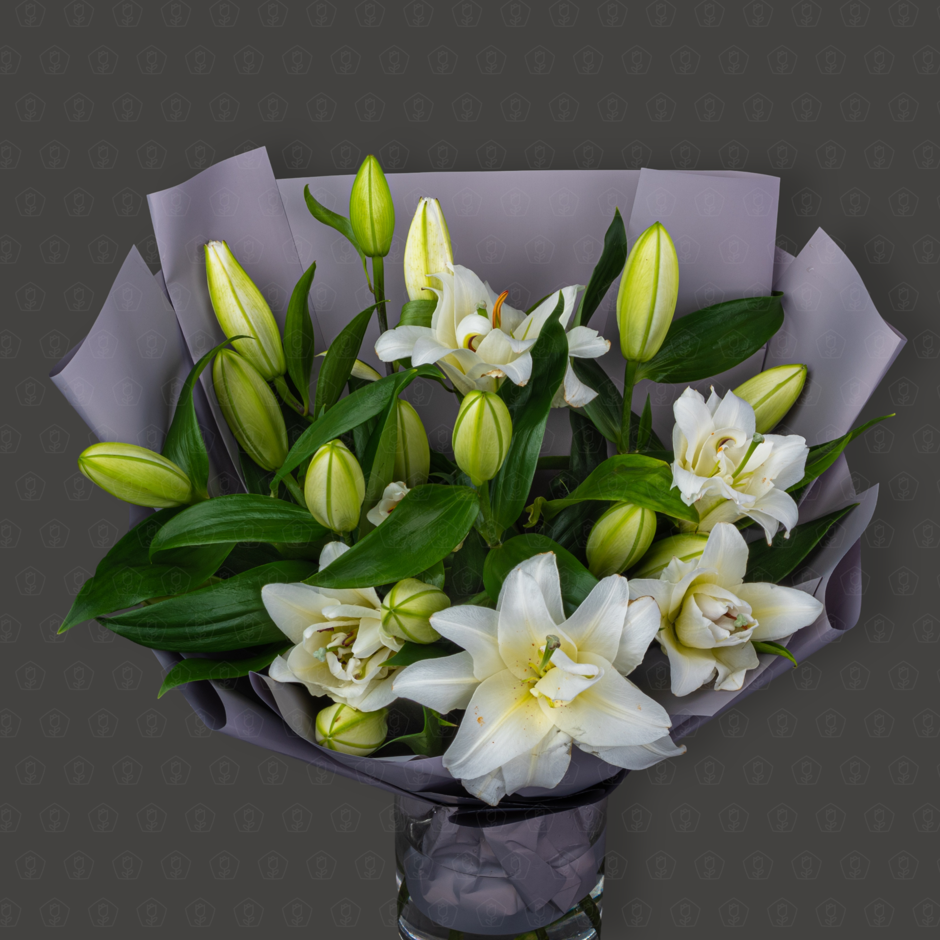 "Изящество линий" – ваш идеальный выбор. Классическая красота белых лилий в современной, благородной серой упаковке. Это букет, который выразит ваши чувства без лишних слов, будь то благодарность, уважение или нежность.