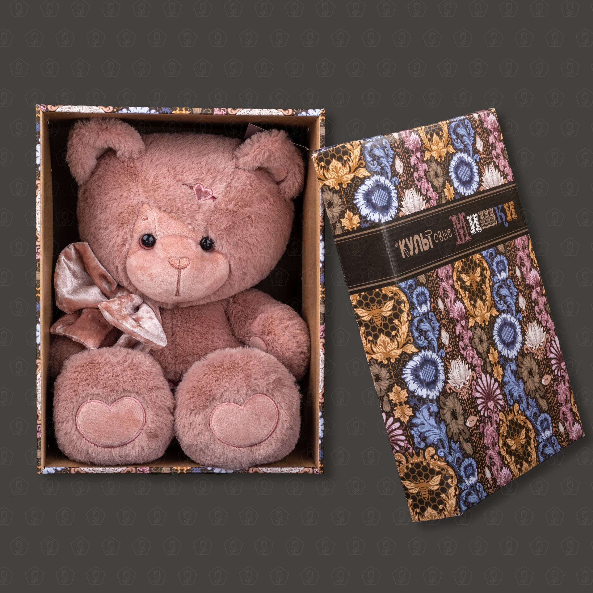 Мягкая игрушка "Медведь Ляля с бантом пудровый" 25 см
