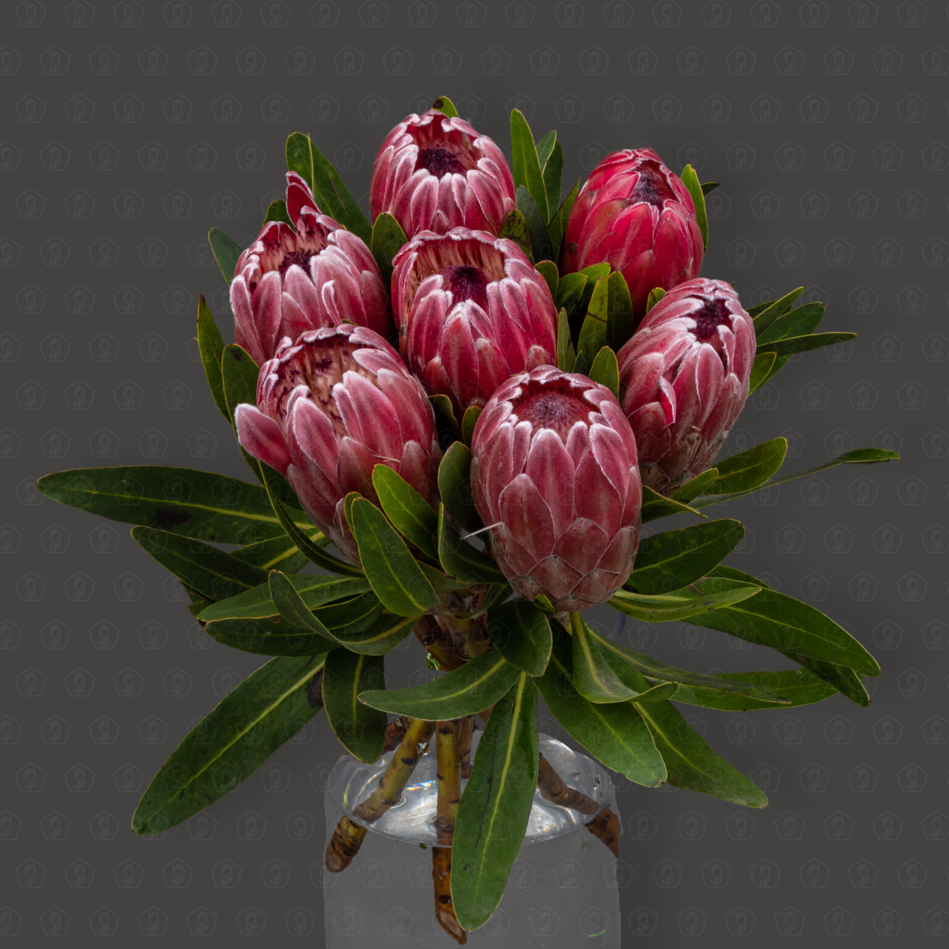 Протея — это уникальное растение, обладающее ярким соцветием, напоминающим чашу. Лепестки, собранные вокруг центра, имеют заостренную форму и могут варьироваться по размеру и текстуре в зависимости от сорта.