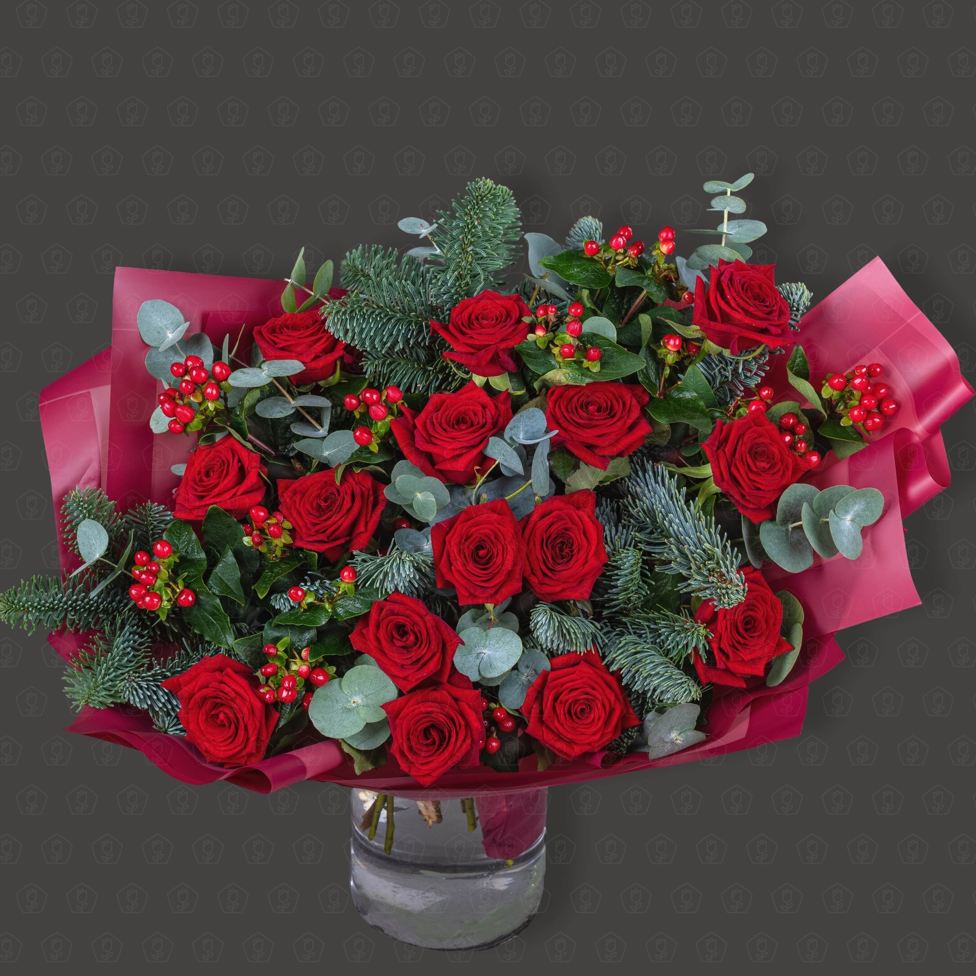 Ощутите магию Рождества с букетом "Рождественский шик"! Глубокий красный цвет роз символизирует любовь и страсть, а аромат хвои нобиллиса напомнит о зимнем лесе. Яркие гроздья красного гиперикума добавят искрящейся радости и праздничного настроения. Идеальный выбор для создания уютной и торжественной атмосферы.